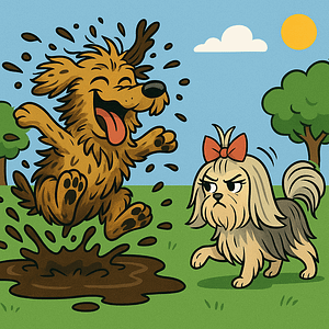 Look, I don’t mind sharing a tug rope—but when she walks in and grabs my duck, squeaks it once, and then pees on it like a land deed? Yeah… that’s a red flag wrapped in fur.