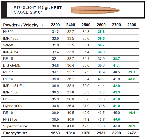 | Common Bullet Weights | 120–147 grains |