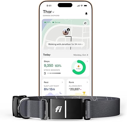 New Fi Series 3+ Smart Dog Tracker Collar – AI GPS for Dogs, Health & Behavior Monitor, Virtual Fence, Escape Alerts, Waterproof, Apple Watch Compatible 12Mo Membership Included